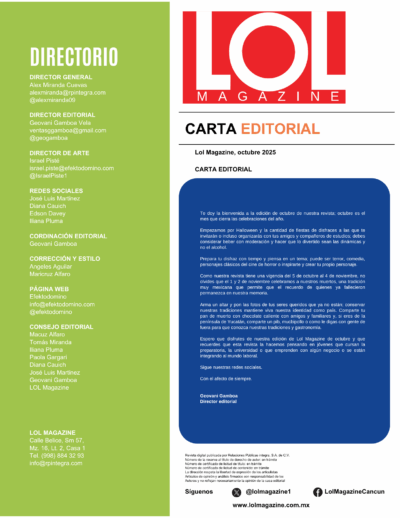 Espero que disfrutes de nuestra edición de Lol Magazine de octubre 2025 y que recuerdes que esta revista la hacemos pensando en jóvenes que cursan la preparatoria, la universidad o que emprenden con algún negocio o se están integrando al mundo laboral.
